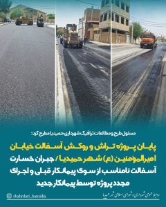 پایان پروژه تراش و روکش آسفالت خیابان امیرالمؤمنین (ع) شهر حمیدیا / جبران خسارت آسفالت نامناسب از سوی پیمانکار قبلی و اجرای مجدد پروژه توسط پیمانکار جدید به گزارش روابط عمومی شهرداری حمیدیا، مهندس آسایش، مسئول طرح و مطالعات ترافیک شهرداری، از اتمام عملیات تراش و روکش آسفالت خیابان امیرالمؤمنین (ع) خبر داد و گفت: این پروژه در پی کیفیت پایین آسفالت اجراشده توسط پیمانکار مربوطه در سال گذشته و با هدف ارتقاء کیفی معابر شهری به مرحله اجرا درآمد. وی با اشاره به انجام بررسیهای فنی دقیق و برگزاری جلسات کارشناسی متعدد در خصوص این پروژه، خاطرنشان کرد: پیمانکار قبلی موظف شد تمامی هزینههای اجرای مجدد آسفالت را بهطور کامل پرداخت کند و عملیات ترمیم بدون تحمیل هیچگونه هزینهای به شهرداری انجام شد. مهندس آسایش در ادامه با اشاره به تعویض کارخانه تولید آسفالت، تصریح کرد: به منظور تضمین کیفیت بهتر پروژه، کارخانه تأمینکننده آسفالت نیز تغییر یافت و در اجرای مجدد، از آسفالت باکیفیتتر و مطابق با استانداردهای فنی استفاده شد. وی افزود: عملیات جدید به پیمانکاری دیگر واگذار و تحت نظارت مستمر شهرداری، دفتر فنی استانداری و شورای اسلامی شهر اجرا گردید که با رعایت استانداردهای اجرایی لازم، به پایان رسید. در پایان، مهندس آسایش با قدردانی از صبوری و همراهی شهروندان در طول اجرای پروژه گفت: مشارکت و همکاری مردم، نقش مهمی در تسریع روند اجرای عملیات داشته است.